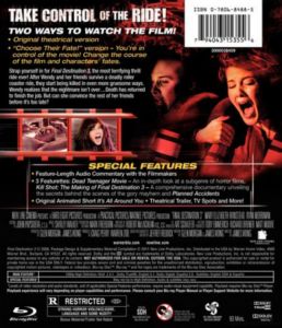 Feature-Length Audio Commentary with the Filmmakers 3 Featurettes: ·Dead Teenager Movie ·Kill Shot: The Making Of Final Destination 3 ·Planned Accidents Original Animated Short It's All Around You Theatrical Trailer TV Spots